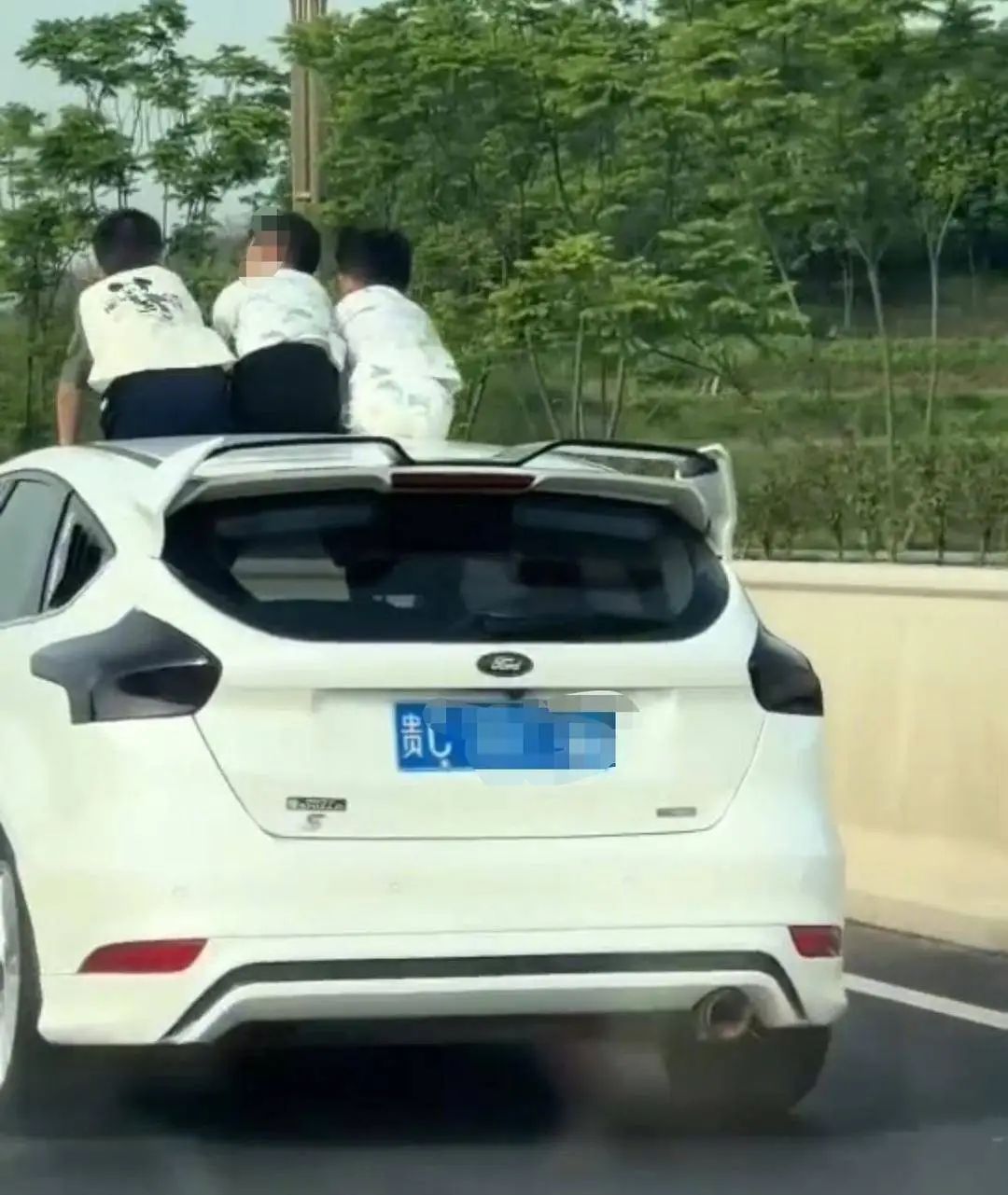 5月2日,有网民在社交平台发布视频称,一辆轿车在最右侧车道缓慢行驶时,3名小男孩通过天窗坐到了车顶位置,同时还不停地侧身彼此交谈。