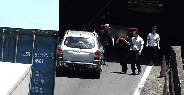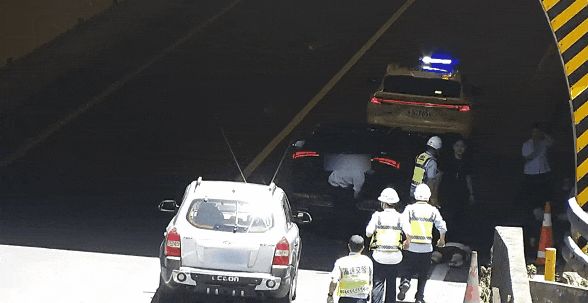 看到一辆白色SUV停在隧道口
