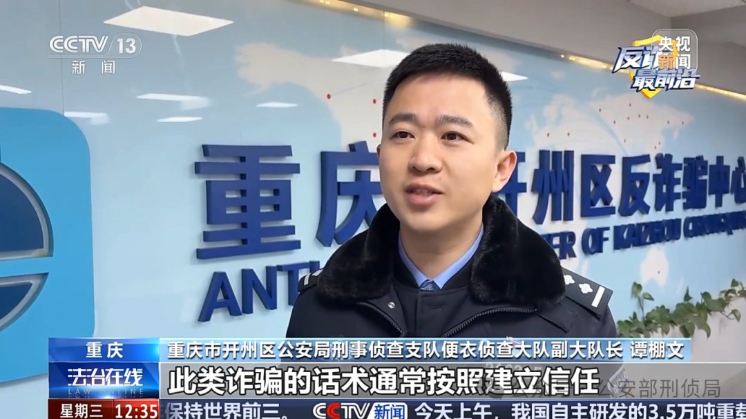 重庆市开州区公安局刑事侦查支队便衣侦查大队副大队长 谭棚文:此类诈骗的话术通常按建立信任、制造恐慌、引导操作三个阶段展开,其核心首先是冒充权威、建立信任,对方通过冒充“客服”或“官方工作人员”,先报一串工号,并准确报出您的姓名,以此获取初步信任。