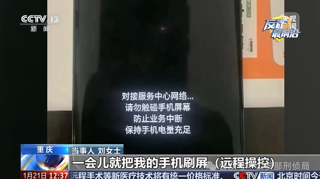 被害人 刘女士:一会就把我的手机刷屏(远程操控),然后又让我扫脸,又输入密码,然后我们就感觉不对劲。我们这离派出所很近,我们就马上去派出所,他们正好在上班。
